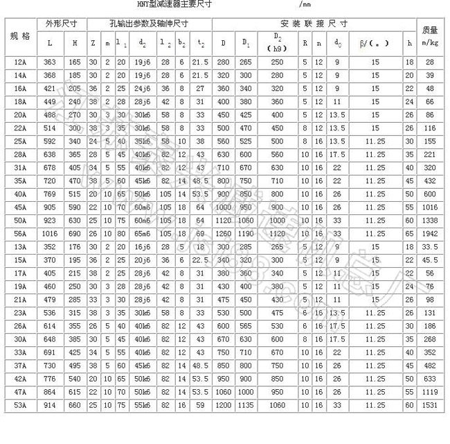 工作条件:输入转速28B型以下≤3000 r/min,40B型以下≤1800r/min,45B型以下≤1000r/min,Y型≤1500r/min;公称转矩2.107~588kN·m;传递功率0.25~2000kW;工作环境温度为-40~45℃,低于0℃时,启动前润滑油应预热,高于45℃时应采取降温措施。