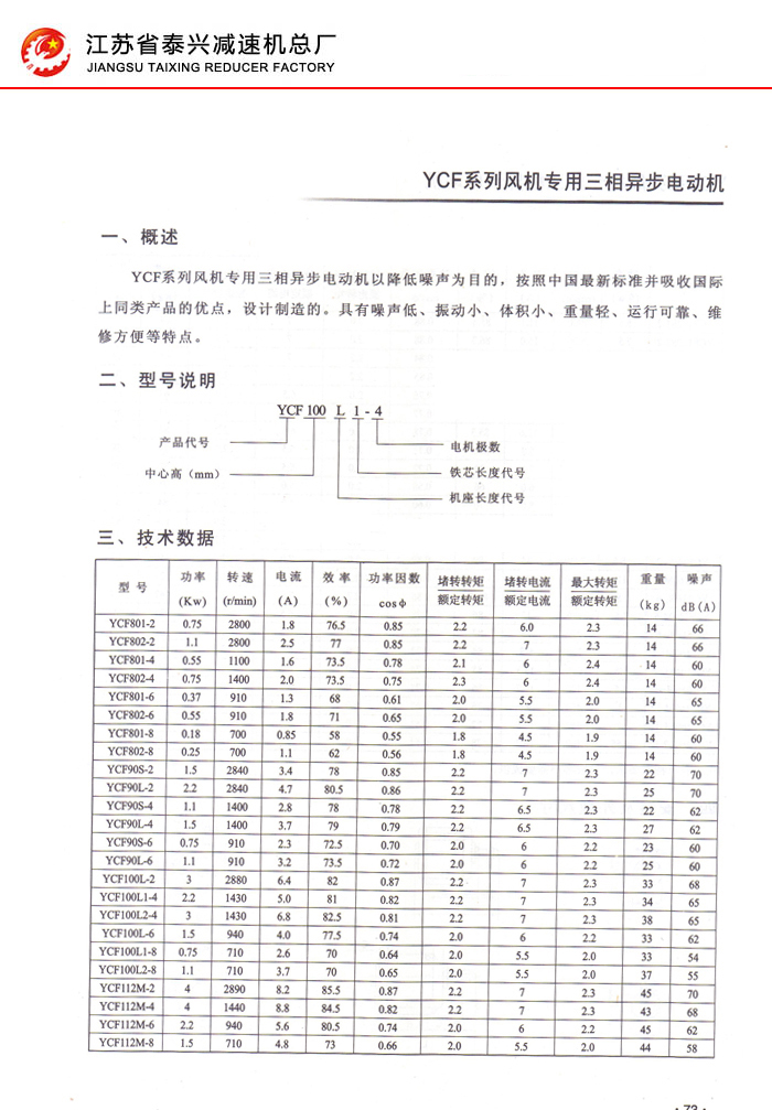 产品名称:YCF系列风机专用三相异步电动机73-75