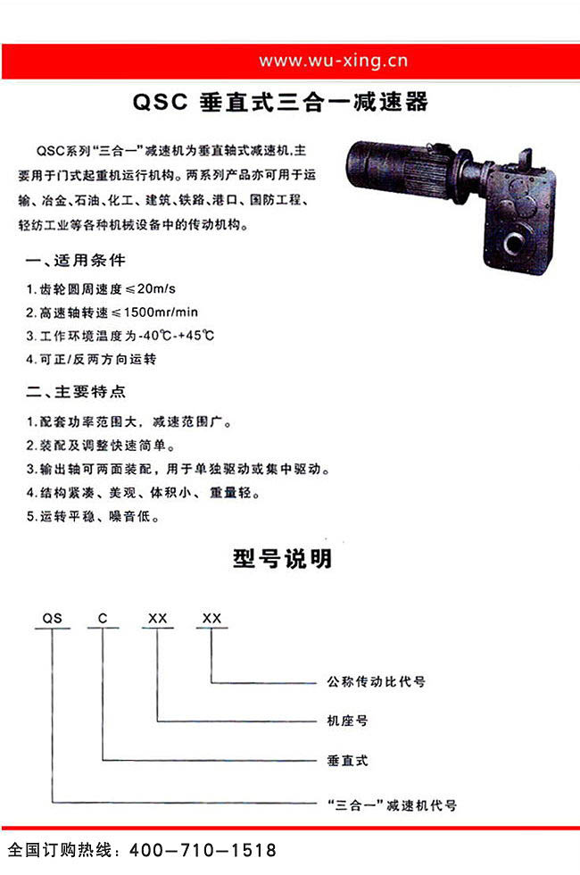 产品名称:QS、QSC三合一齿轮减速器